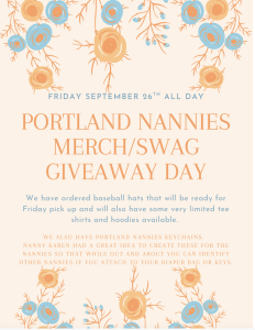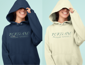 NEW PORTLAND NANNIES SWAG RELEASE! When I bought Portland Nannies back in 2004 it came with the same logo that I had been using that entire time, it was classic yet dated. I am a true Mainer, I fight ANY change and I understand with a business, change is needed. But yet, I fight it! Thanks to nanny Emma’s kind nudging and my amazing nanny Savannah Perico’s artistic abilities I have been slowly but eagerly updating my logo. I have ordered new hoodies and v-neck tee shirts and cannot wait to share with my nannies. I will be drawing five nannies on Thursday for hoodies and five nannies for our new v-neck tees!