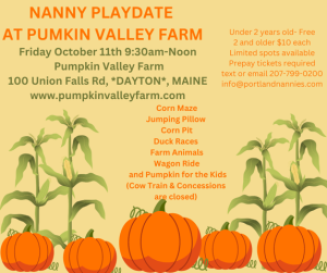 Plans for our upcoming Pumpkin Valley Farm Playdate on Friday October 11th at 9:30am!
