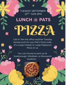 WEDNESDAY Stop by OTTOs Pizza, 125 John Roberts Rd in South Portland after work, between the hours of 4-6pm for a happy hour slice and drink. I will grab us a picnic table, stop by anytime during those hours.